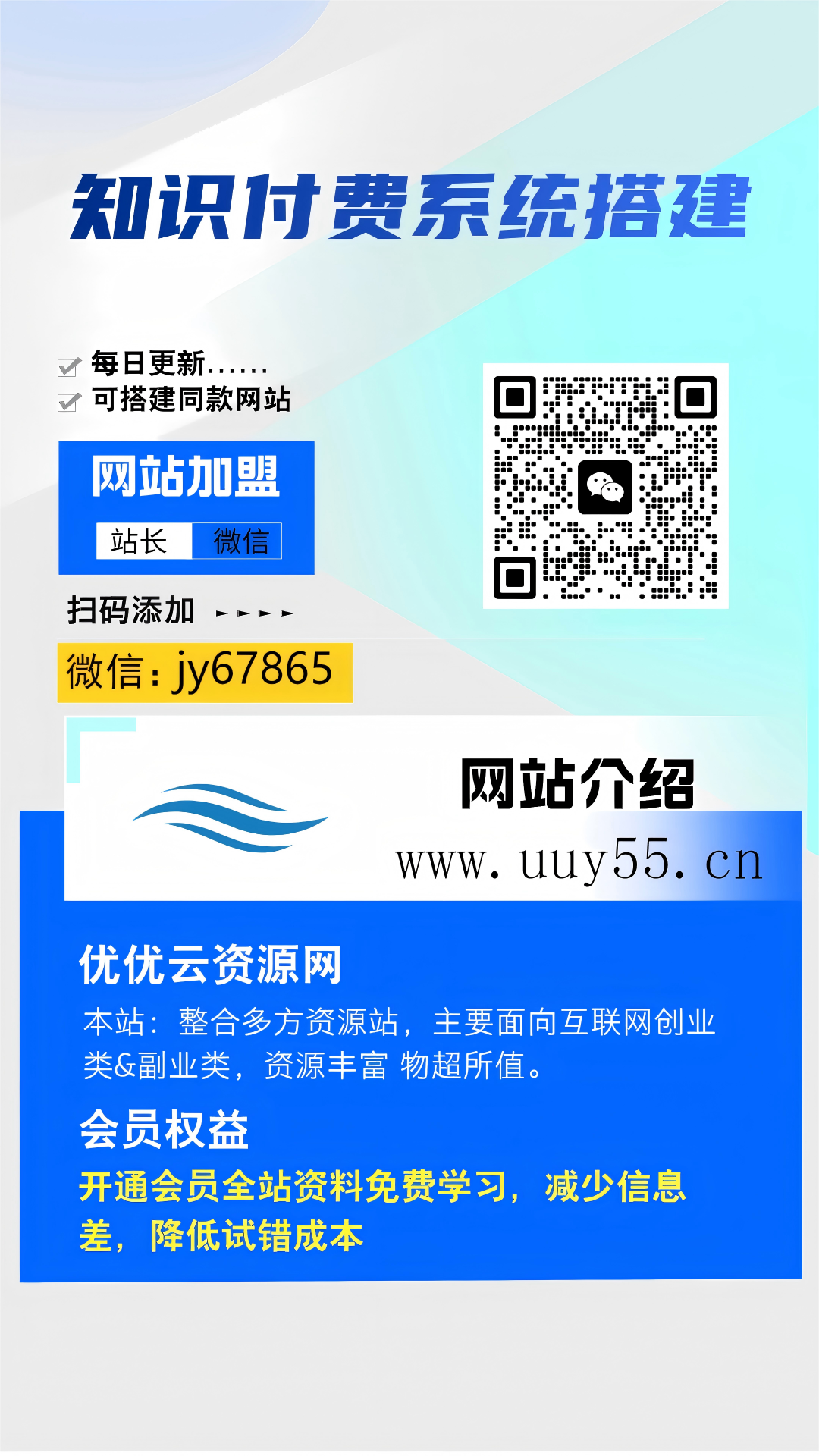 加盟优优云分享,加盟搭建同款知识付费资源网站,实现长期稳定被动收入~